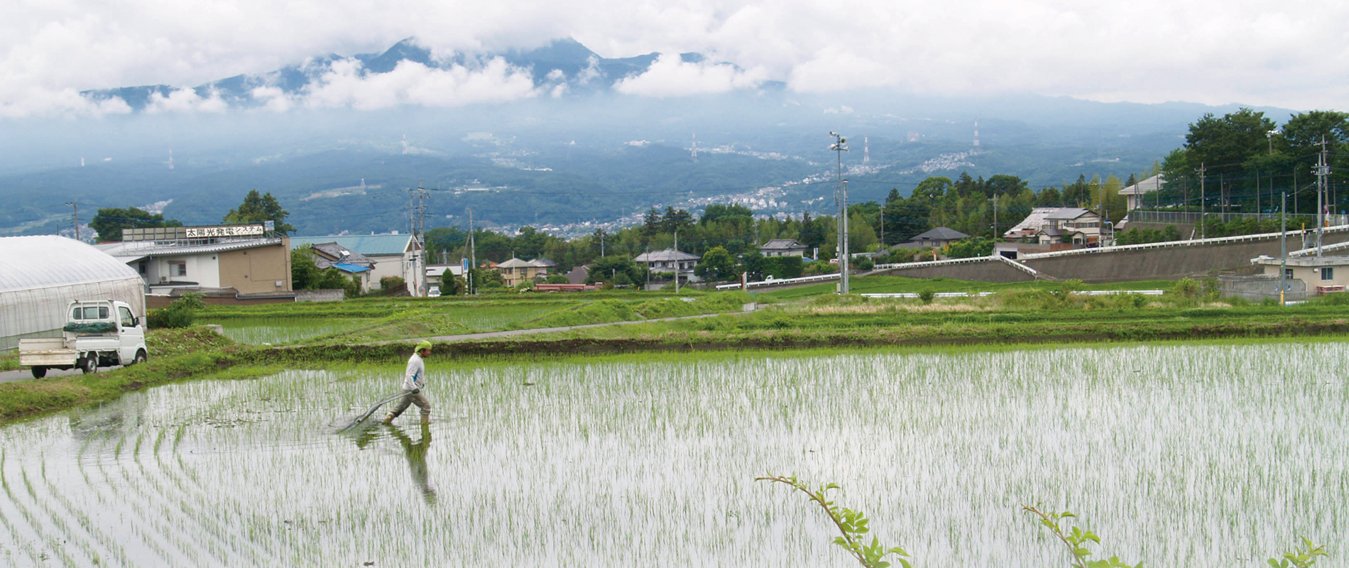 群馬県赤城山の西麓標高350mに位置する私達の圃場は、伊香保温泉の沸く榛名山、子持山の間を抜ける利根川によって沖積された関東平野の始まる、山と水に恵まれた見晴らしの良い場所にあります。
